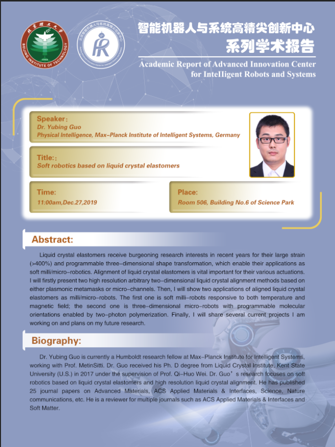 纳米机器人团队12.26学术报告通知Academic Report of Advanced Innovation Center for Intelligent Robots and Systems