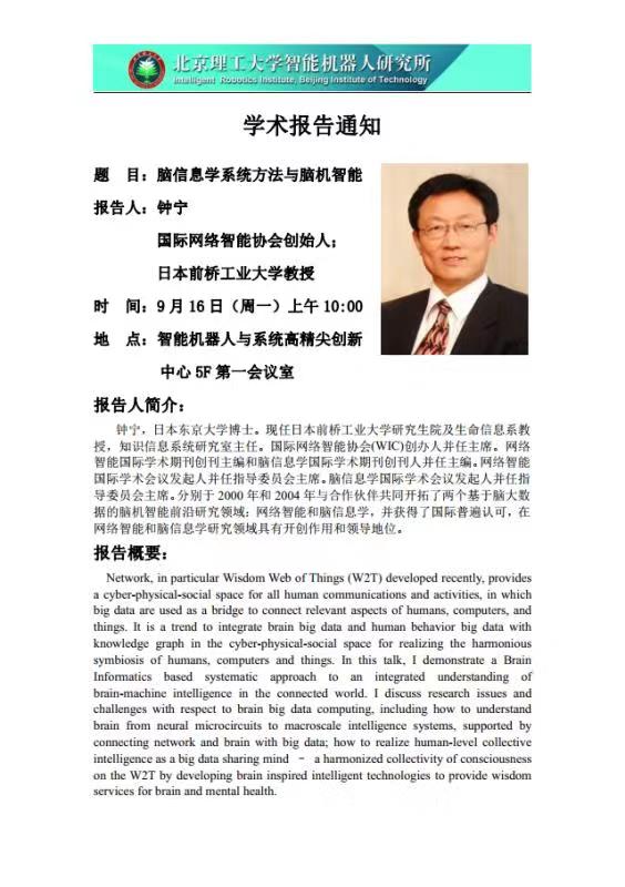 9.16学术报告通知Academic Report of Advanced Innovation Center for Intelligent Robots and Systems
