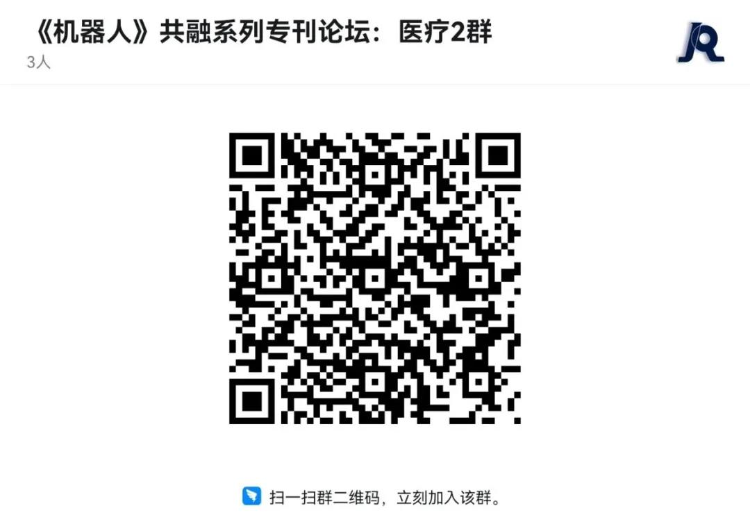2、打开钉钉扫一扫,扫描下方“《机器人》共融系列专刊论坛:医疗”二维码加入我们吧!(如您之前参加过云讲座,则不必再加入该群,届时将多群联播,任何一个群均可观看直播)