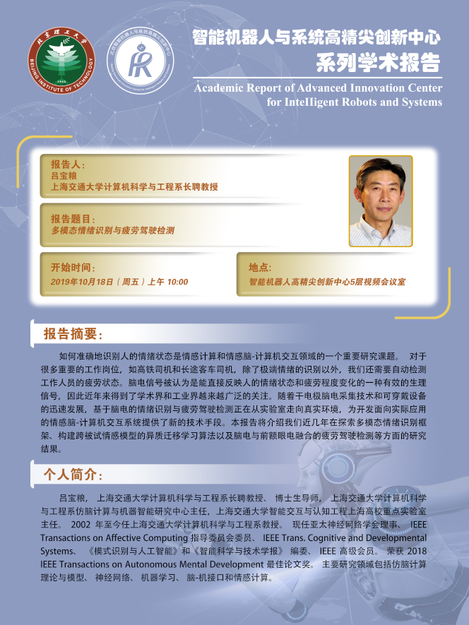 吴景龙老师团队10.18学术报告通知Academic Report of Advanced Innovation Center for Intelligent Robots and Systems